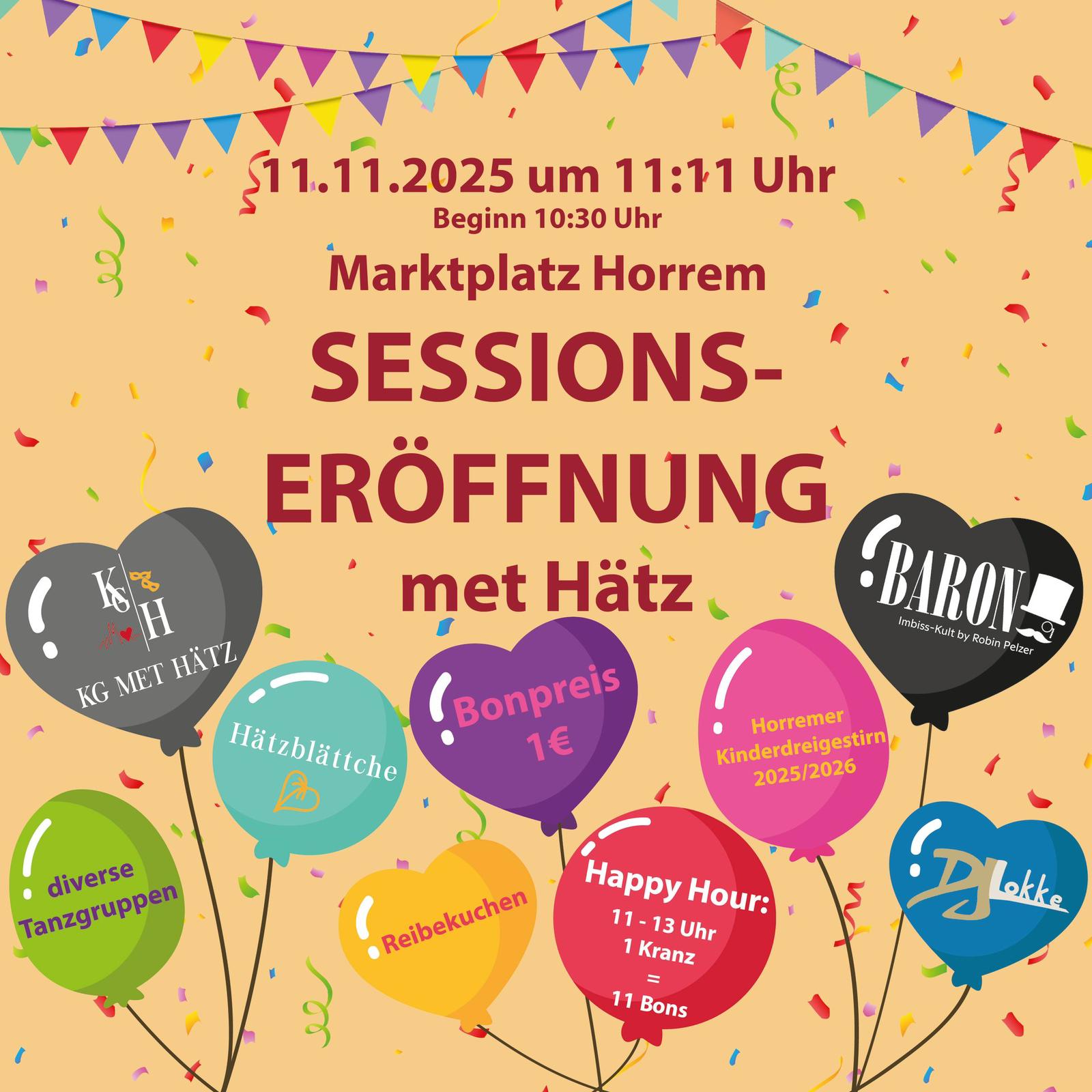 Horremer Marktplatz Friedrich-Ebert-Platz, Kerpen-HorremBald ist es wieder soweit! Unsere Sessionseröffnung geht in die 2. Runde 🥳 Seid dabei und feiert mit uns in die 5. Jahreszeit 🎊🎉 NEU: Von 11 - 13 Uhr gibt's eine Happy Hour 🍻 1 KRANZ FÜR 11 BONS (11 €) Freut Euch auf den Baron 🌭🍟, das Horremer Kinderdreigestirn 🎭, unsere Hätzblättche 💕 […]