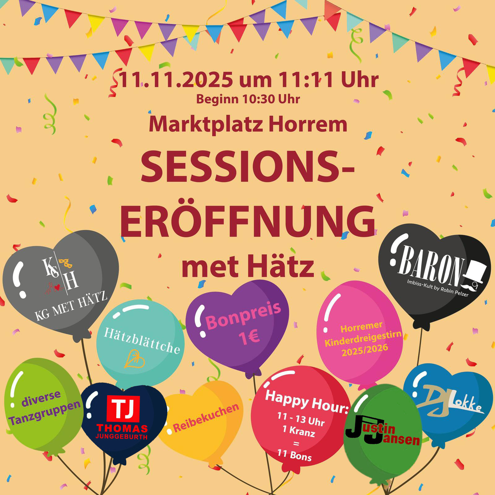 Horremer Marktplatz Friedrich-Ebert-Platz, Kerpen-HorremBald ist es wieder soweit! Unsere Sessionseröffnung geht in die 2. Runde 🥳 Seid dabei und feiert mit uns in die 5. Jahreszeit 🎊🎉 NEU: Von 11 - 13 Uhr gibt's eine Happy Hour 🍻 1 KRANZ FÜR 11 BONS (11 €) Freut Euch auf den Baron 🌭🍟, das Horremer Kinderdreigestirn 🎭, unsere Hätzblättche 💕 […]